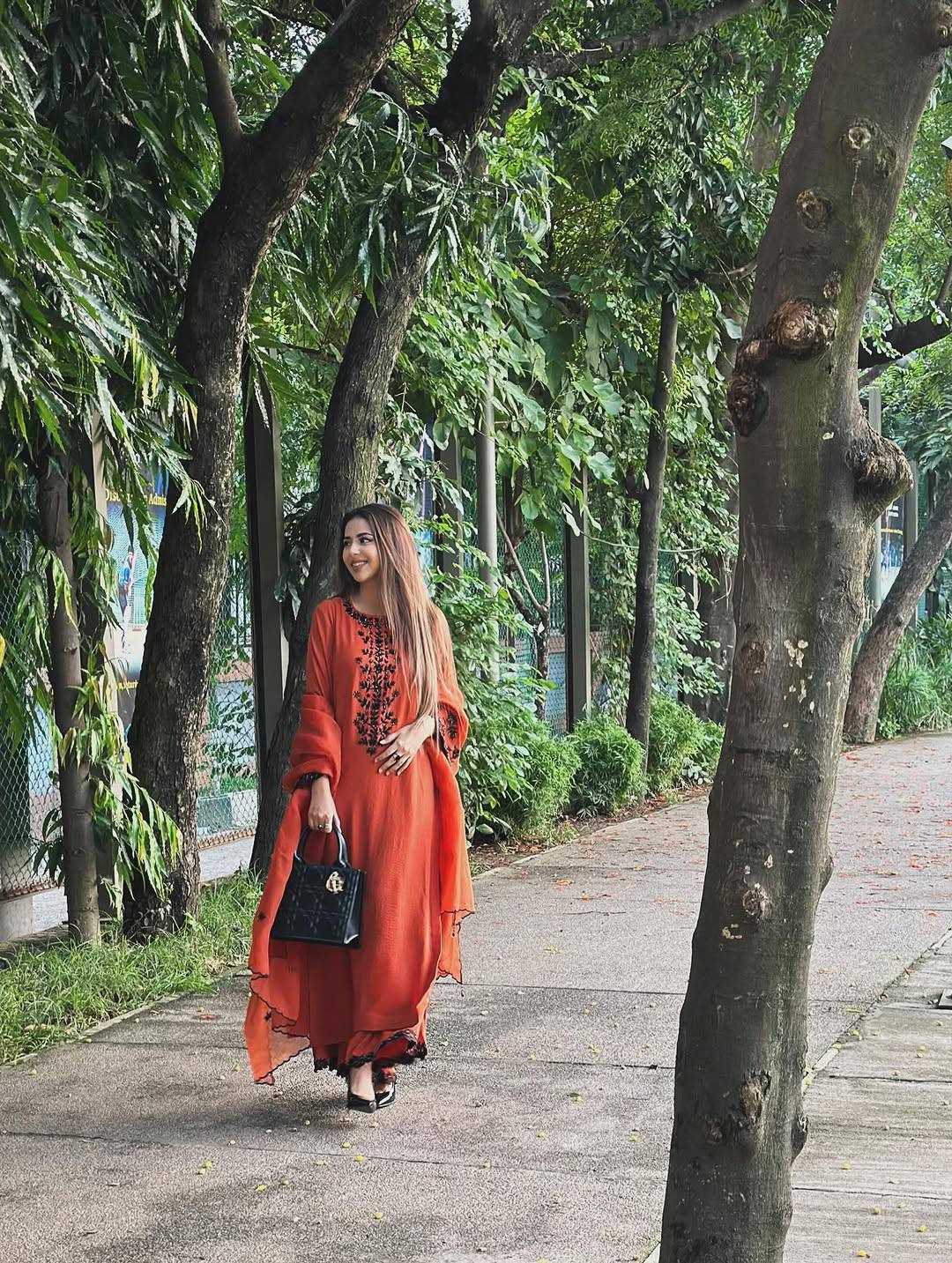Top Fabric: Beautiful georgette with thread and 5 mm sequin embroidery, canvas border, micro lining — Kurti length: 40″
